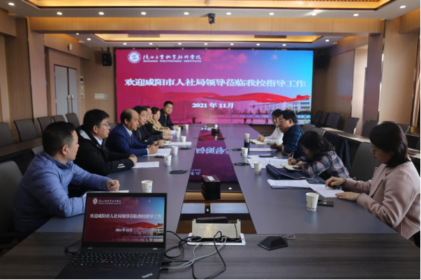 11月10日下午,咸阳市人社局技能提升办公室主任魏荣社、罗晓彤、冯小利、韩敏等一行4人莅临我校进行技能大师工作室实地考察工作,我校副校长梅创社、人事处处长殷锋社及技能大师工作室负责人参加了会议,会议由殷锋社处长主持。