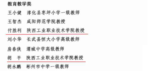 近日,中共咸阳市委办公室、咸阳市人民政府办公室下发《关于命名表彰咸阳市第十一批有突出贡献专家的通报》(咸办字〔2022〕53号),我校教师付胜利、胡平荣获“咸阳市第十一批有突出贡献专家”荣誉称号。